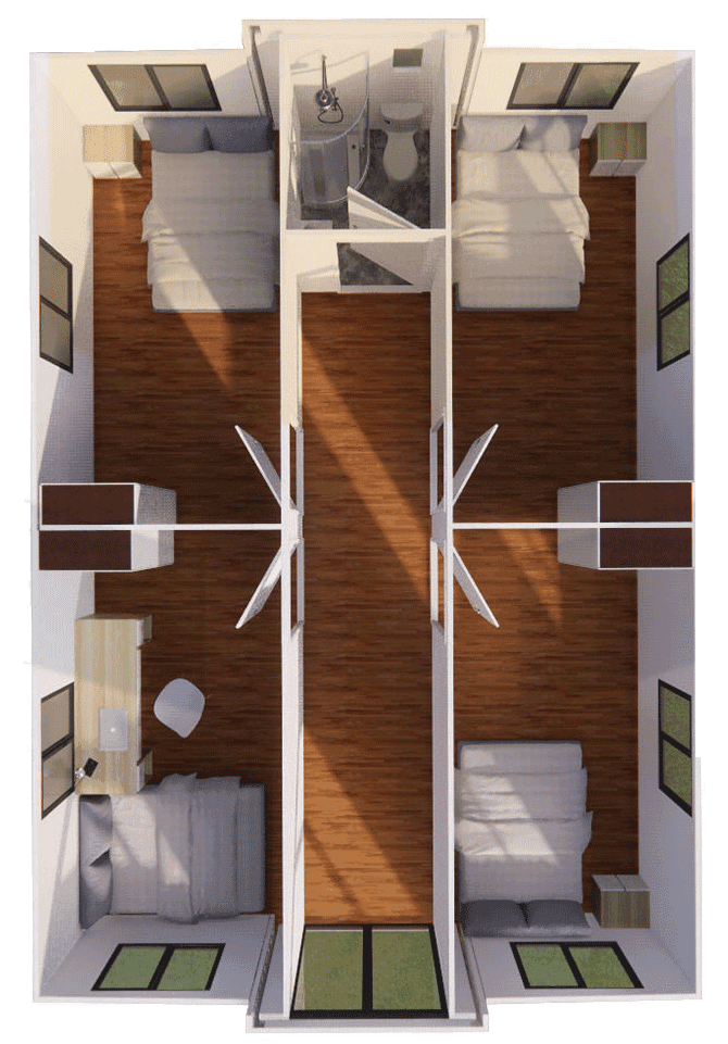 Mini Dual-wing: 27m² 20FT: 35.9m² 30FT: 55.8m² 40FT: 73.6m²